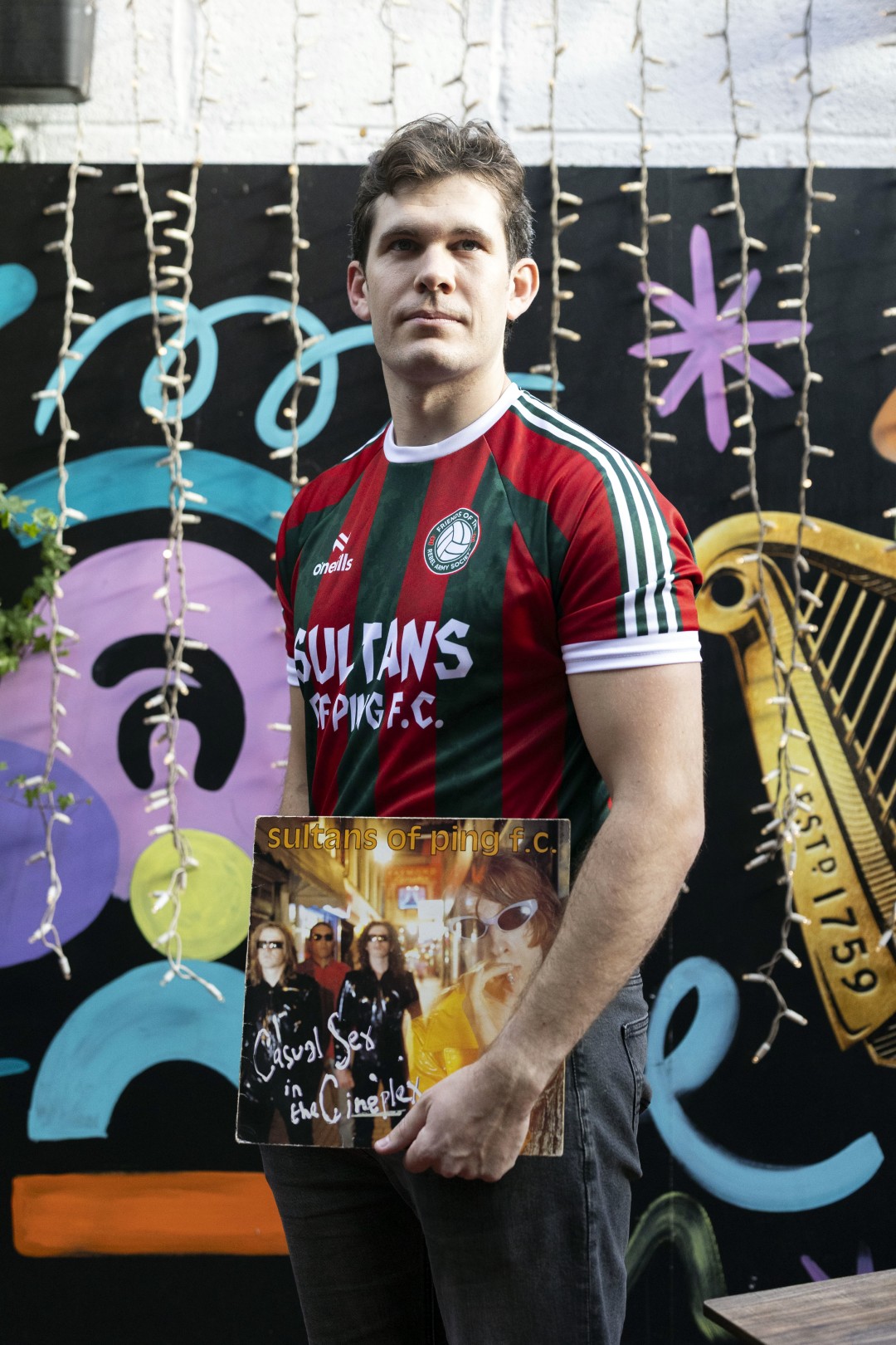 The bottom of the shirt reads “A man can’t have no greater love…” – a nod to ‘Give Him a Ball (And A Yard of Grass)’, the Sultans’ beloved rock tribute to the beautiful game.